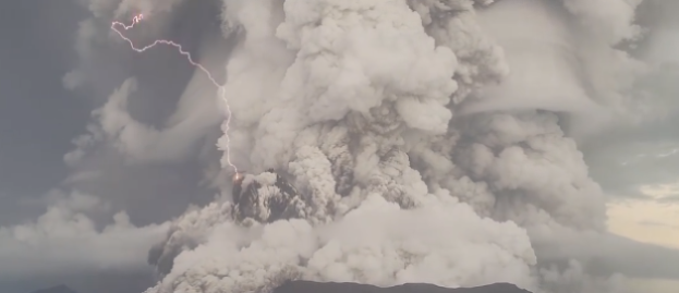 1. Satellite observations showing gigantic volcanic eruption plume reaching the mesosphere