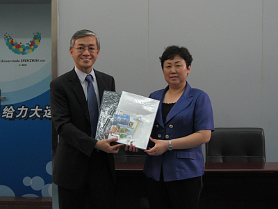 Mr. C.M. Shun, Director of the Hong Kong Observatory, visited Shenzhen Meteorological Bureau on 16 September 2011 to discuss strengthening of meteorological cooperation between Hong Kong and Shenzhen. During the visit, Ms. Wang Yanqing, Director-General of Shenzhen Meteorological Bureau, presented a letter of appreciation to Mr. Shun for the assistance and support offered by the Observatory during the 2011 Summer Universiade.In-depth discussions were made on matters including the exchange of warning messages and meteorological observations, development of forecast techniques and systems, mutual visit and training of personnel, etc. Both sides agreed to strengthen cooperation by building on existing foundation, and to foster further development of meteorological services for Hong Kong and Shenzhen.